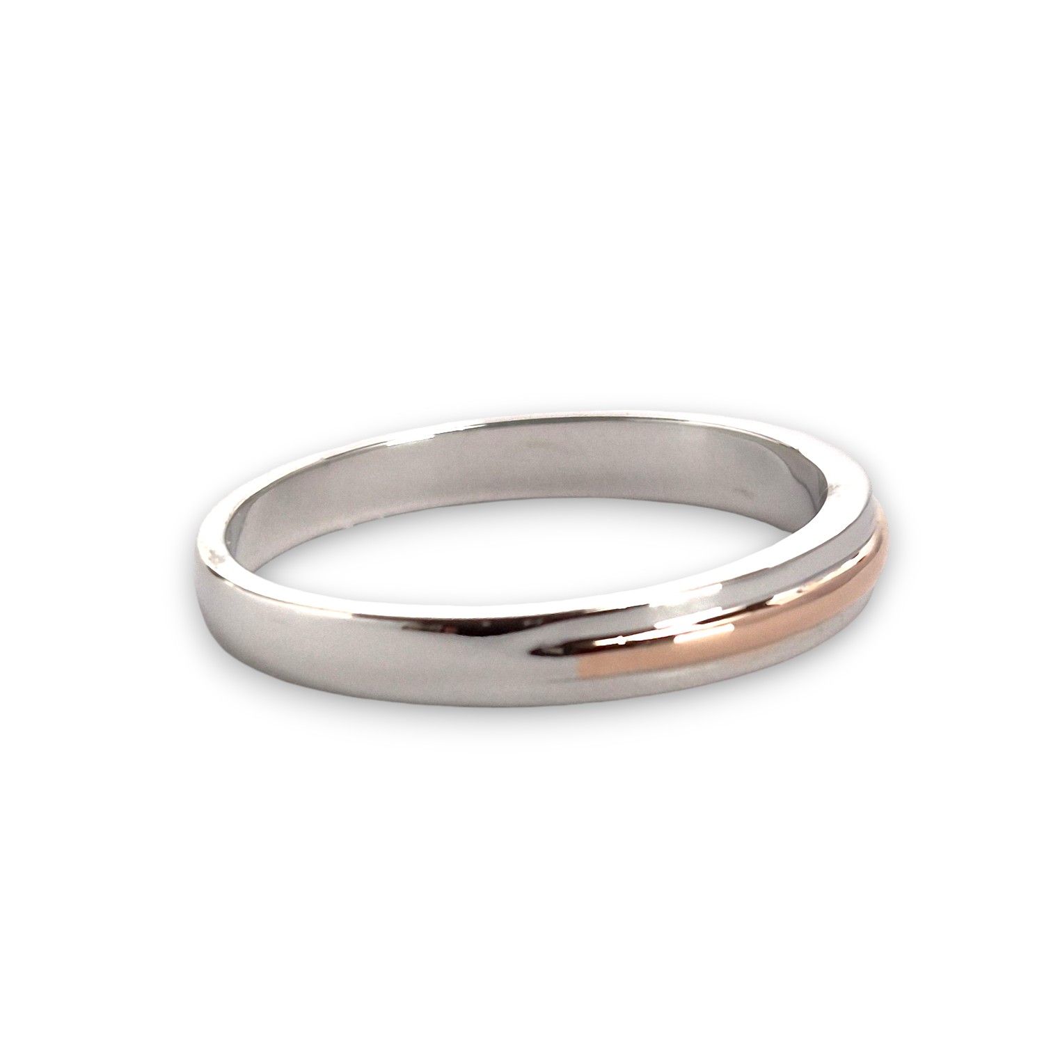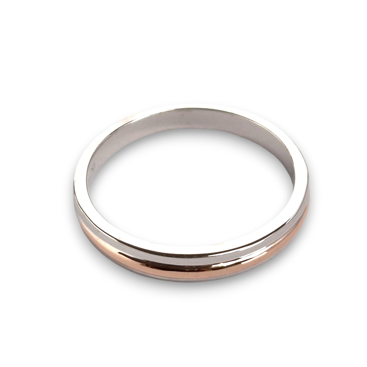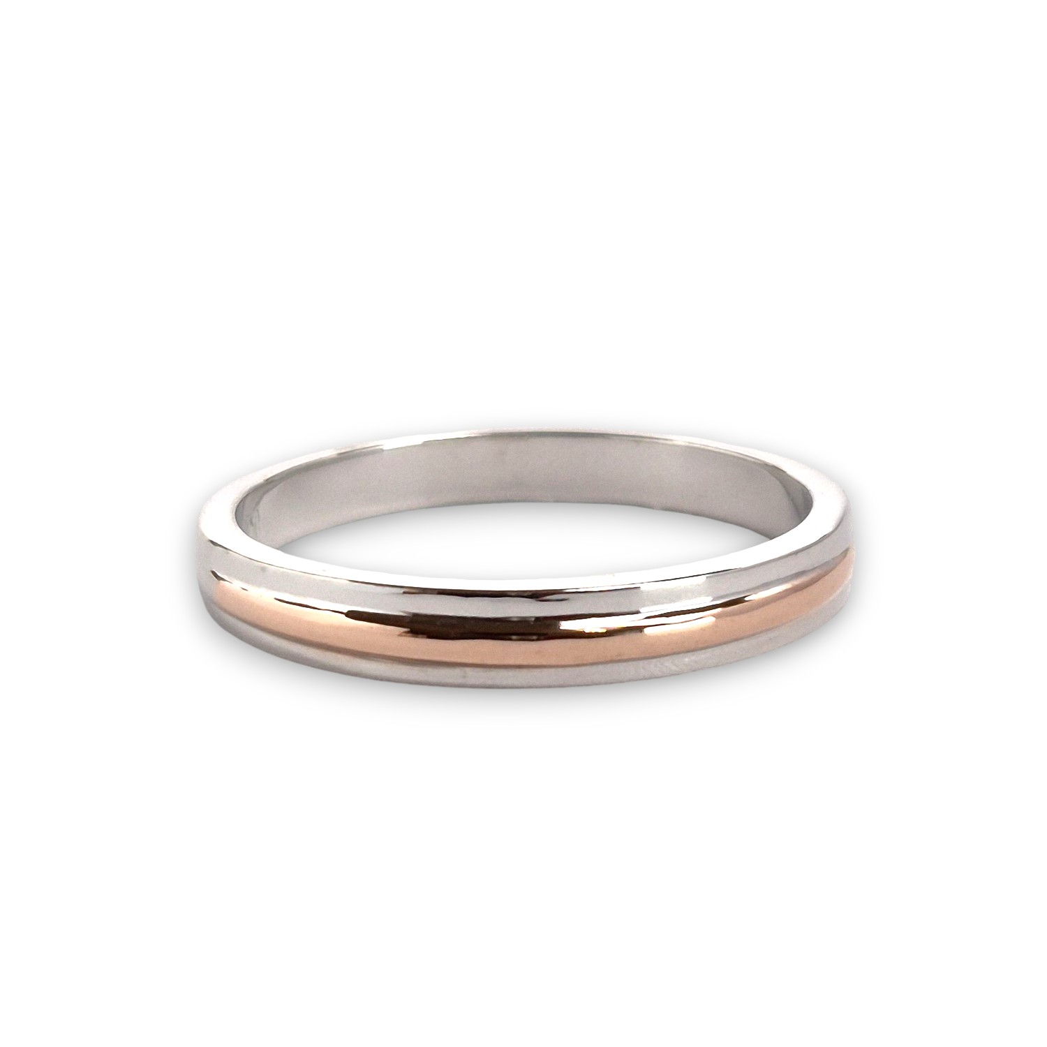 Terdapat aksen garis cembung pada tengah permukaan cincin dengan finishing warna rosegold hongkong.